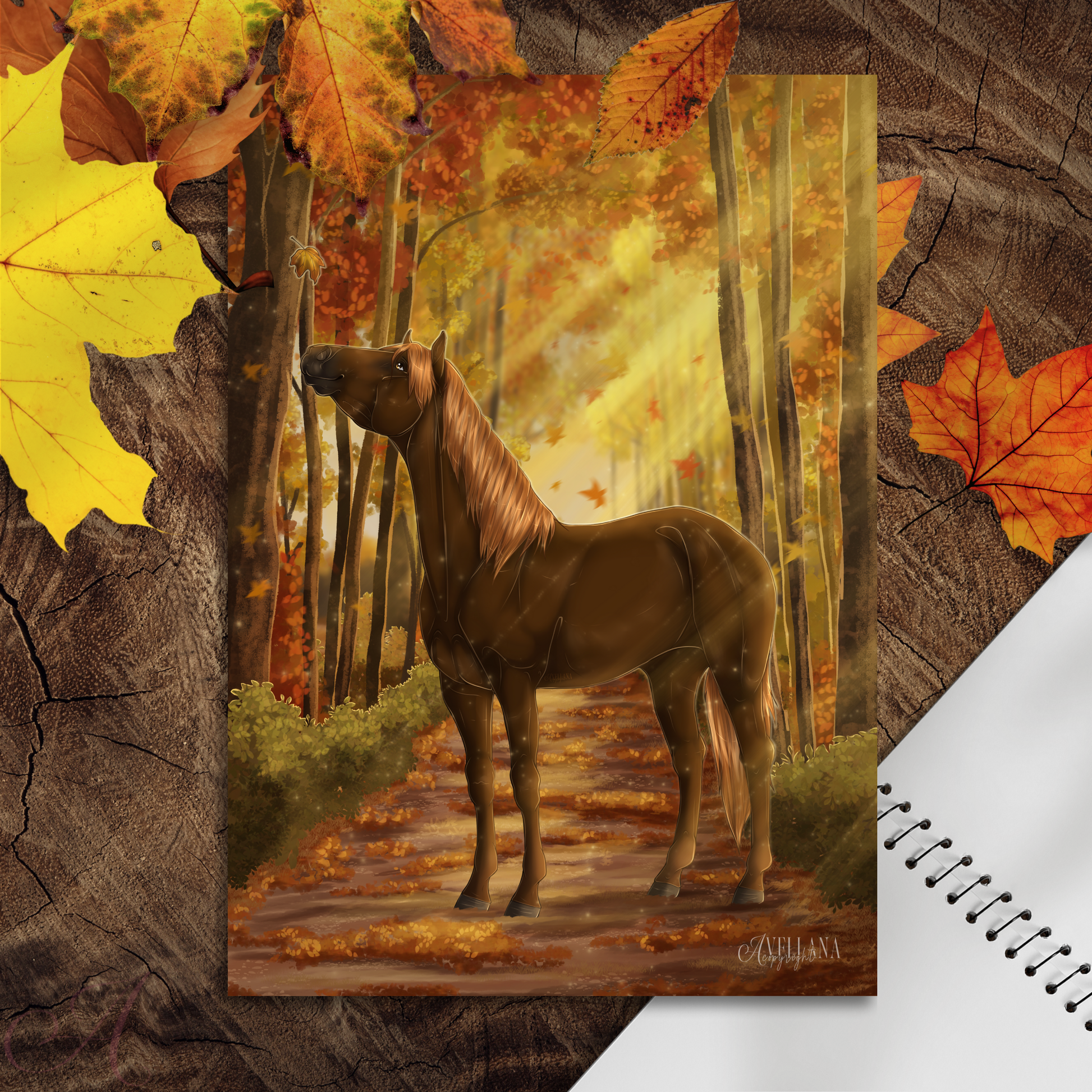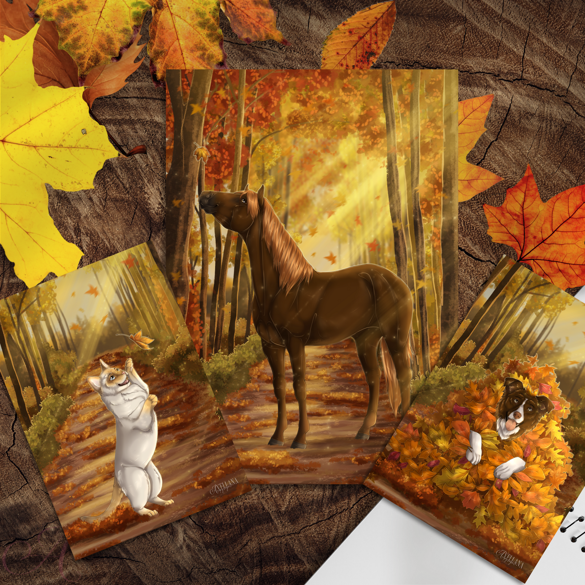 Plongé dans cette magnifique forêt aux teintes orangées, typique de l’automne, afin de mettre à l'honneur votre animal.