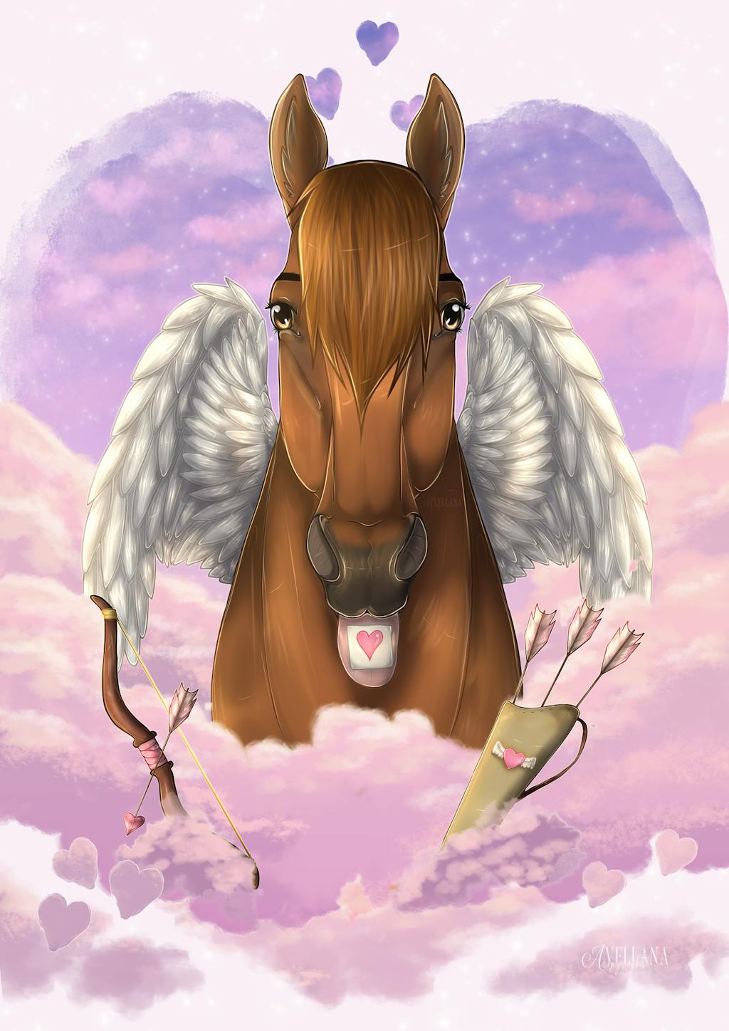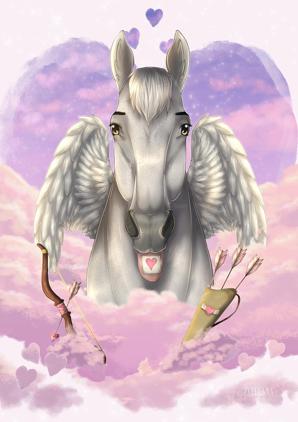 Plongé dans une ambiance douce et céleste, votre animal est représenté tel un petit cupidon. Une création pleine de poésie et de romantisme ❤️